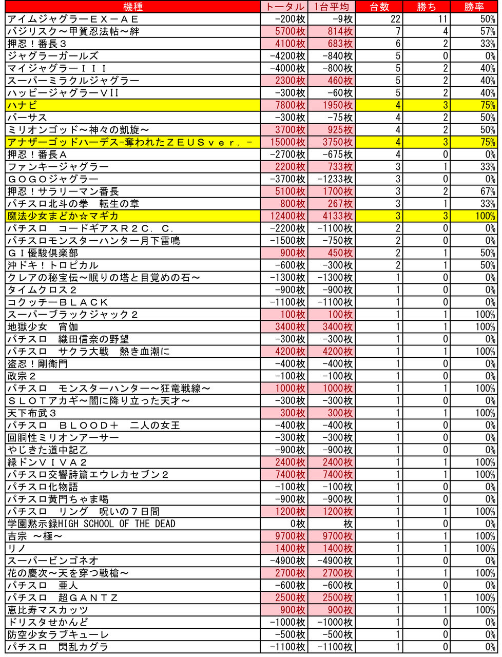 1台が15000枚出てたので、平均があがっちゃった。