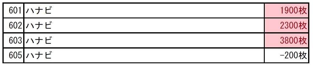 ●ハナビ→3/4、+7800枚・1台平均:+1950枚
