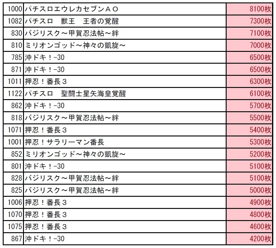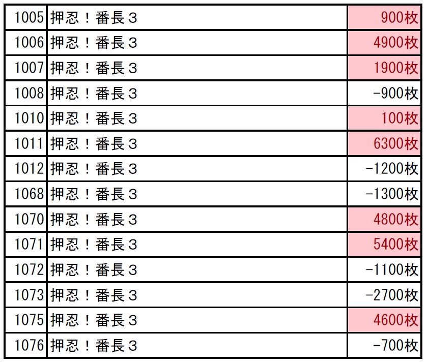 ●番長3→8/14、1台平均:+1500枚