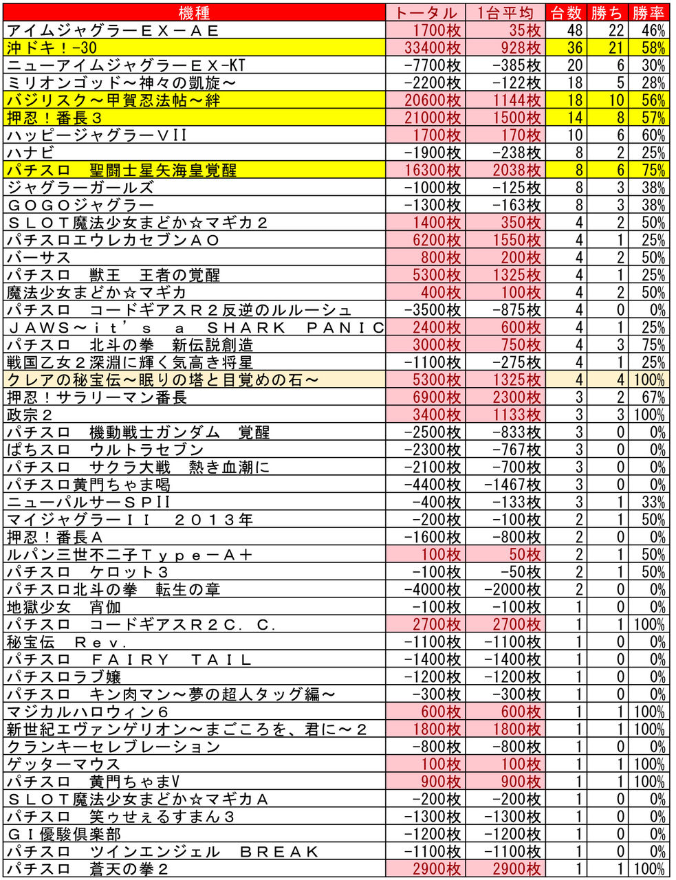 沖ドキ、絆、番長3、星矢が目立って強いですね。