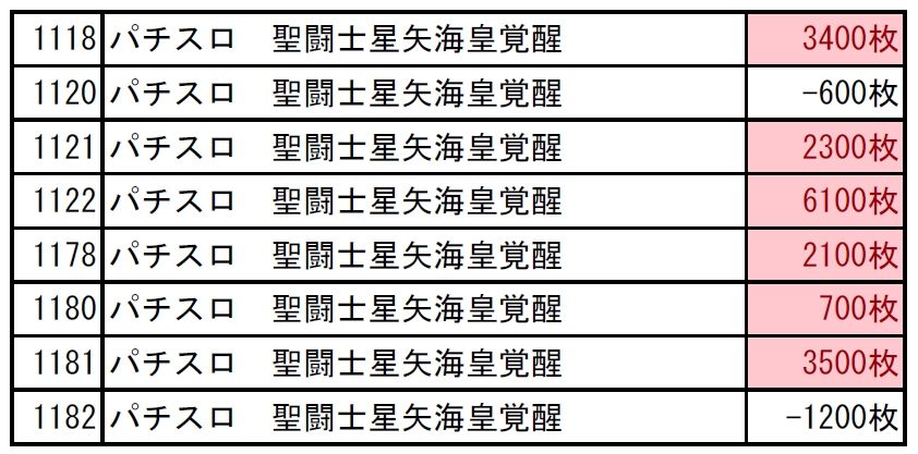 ●星矢→6/8、1台平均:+2038枚