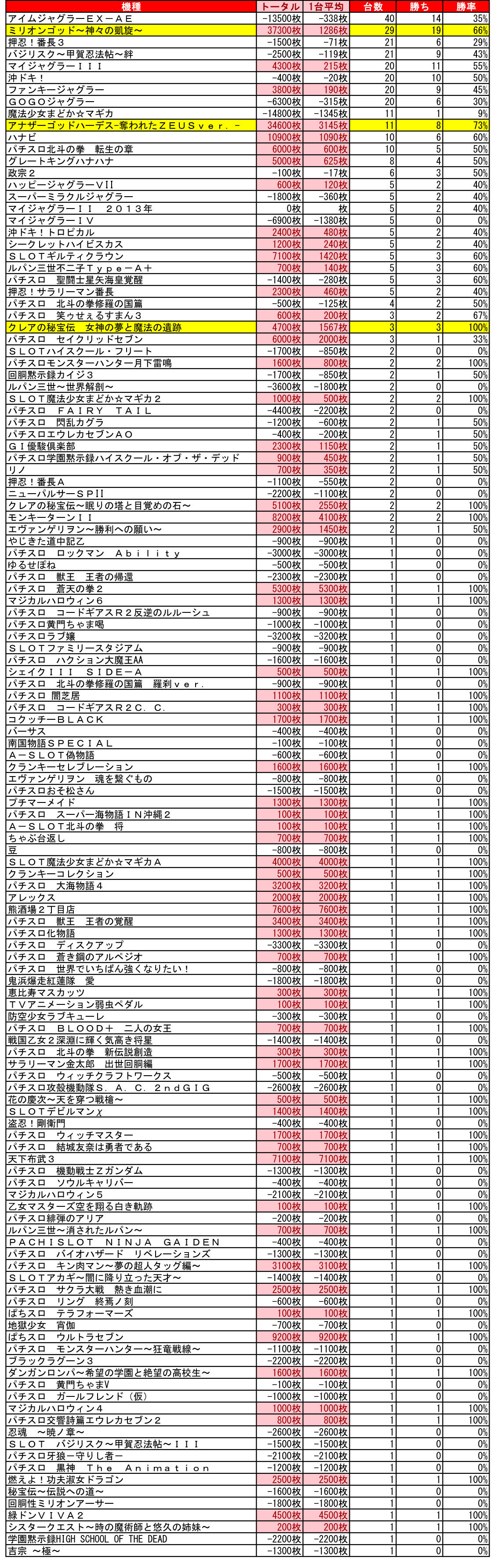2018年09月26日 【9/21・イーグルR-1南8条店】シバター来店集計結果 9/21シバター来店のイーグルアールワンです。抽選は470人だったみたいです。相変わらず多いw全体差枚:+104100枚1台平均:+243枚(20スロ:428台) とんでもなく強い、というワケではないですが普通に10万超えです。ただ、月末に炎上軍が来るので、そっちが本命か???ハーデス・凱旋がとくに◎でした。●ハーデス→8/11、1台平均:+3145枚 万枚2台出ております。●凱旋→19/29、1台平均:+1286枚 半分くらい上なんかな?あと、熊酒場が7600枚出てた☆こういうのは素敵。全体勝率→196/428で46パーでした。 「シバター来店」カテゴリの最新記事