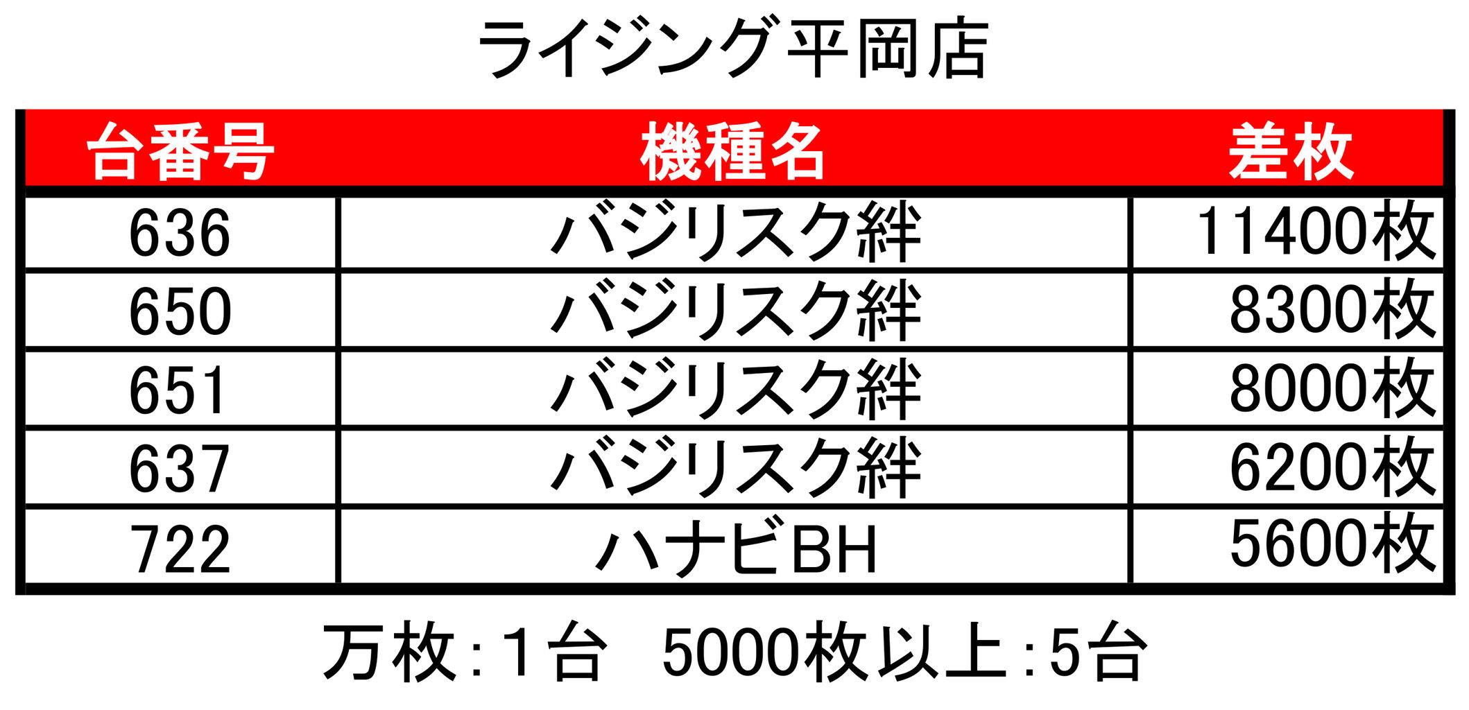 前回3/18に集計した際、近隣店舗のグランドオープンもあった為かわかりませんがそれなりに出ていたライジング平岡店。