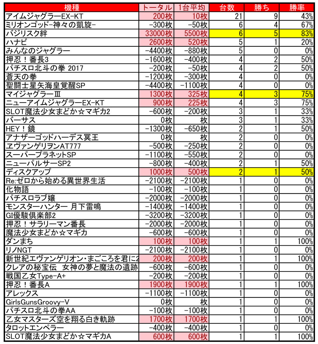 前回よりは出ていませんが、差枚的には一応赤字営業でした。