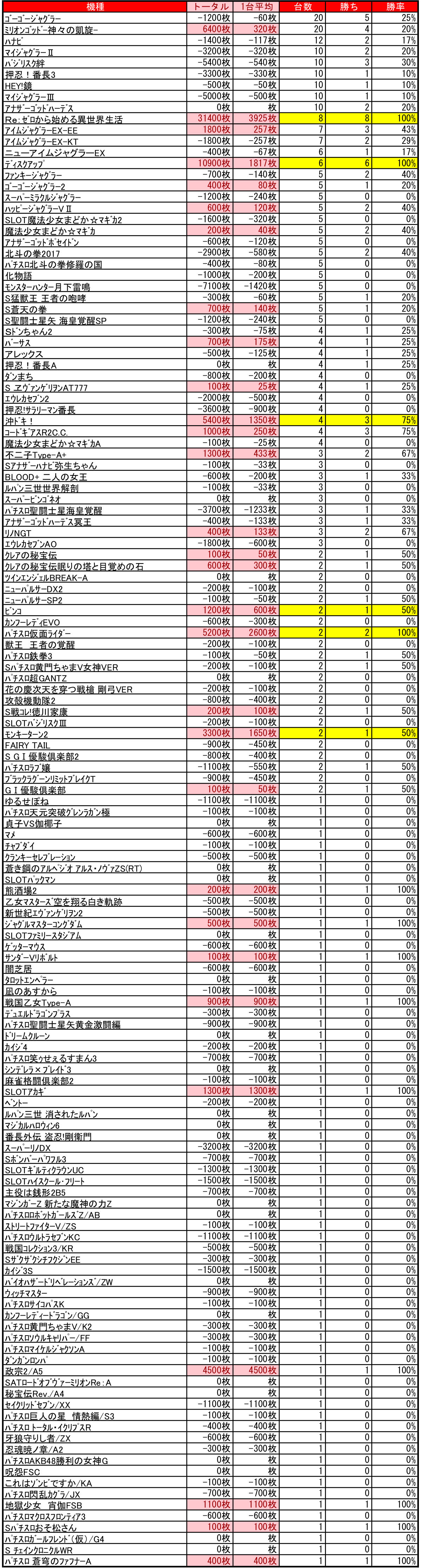 1台平均:-67枚(20スロ400台)