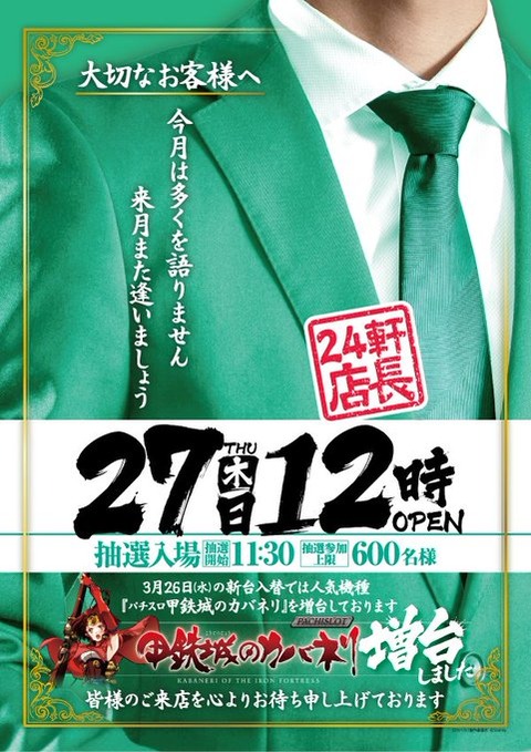 【3/27 プレイランドハッピー二十四軒店】時差12:00オープン!→集計結果