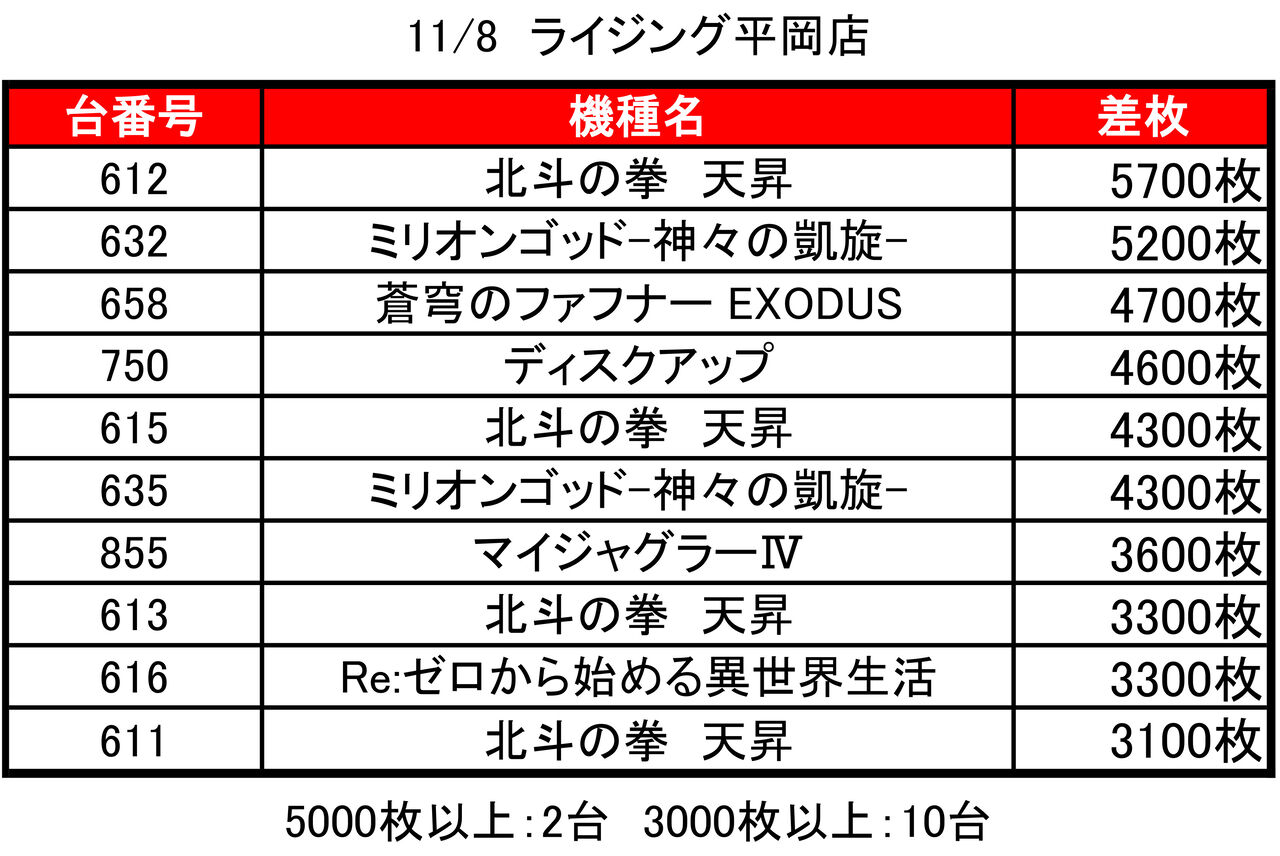 8の付く日恒例の「ライジング平岡」の集計を行いたいと思います。