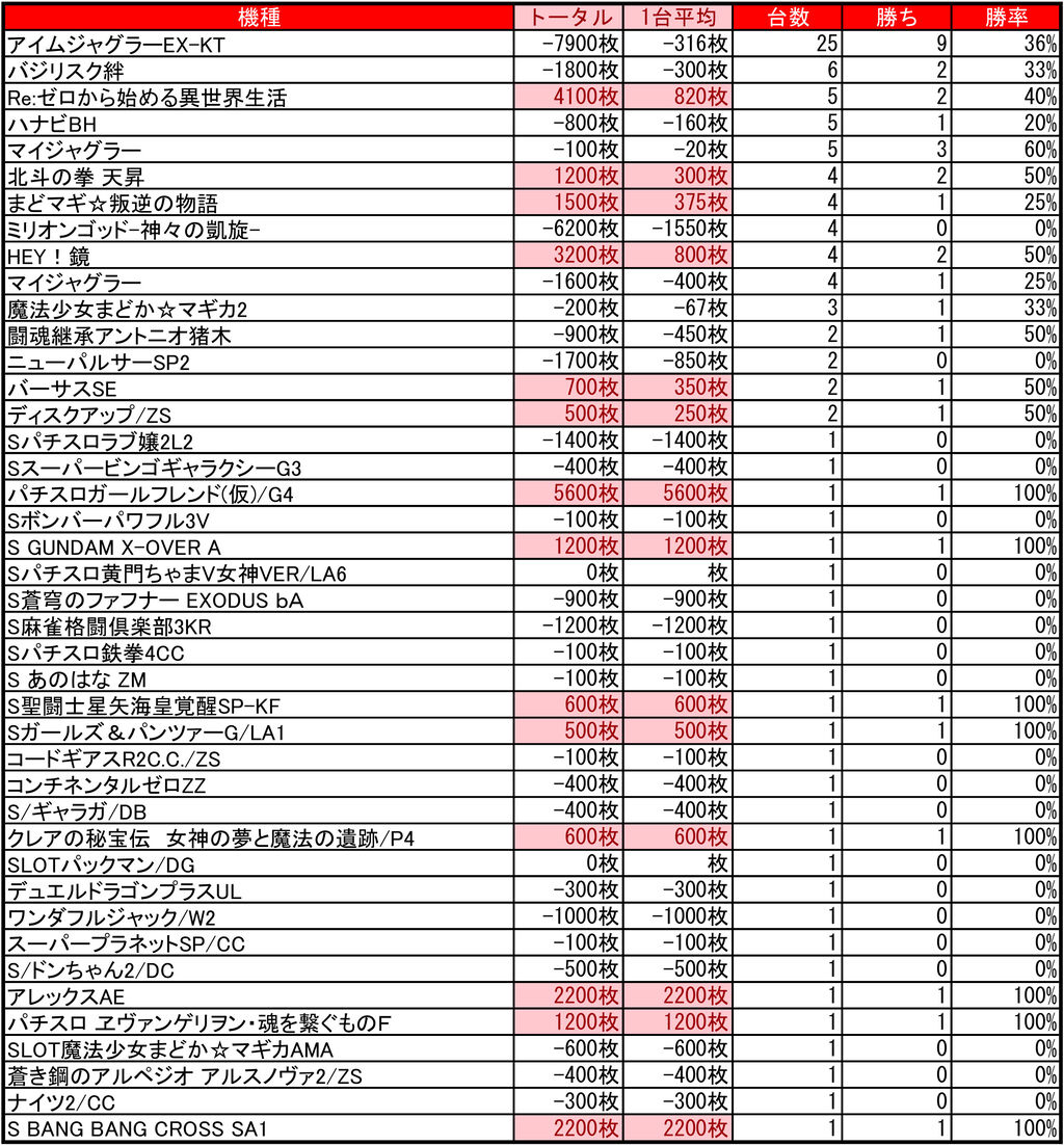 1台平均:-40枚(20スロ:104台)