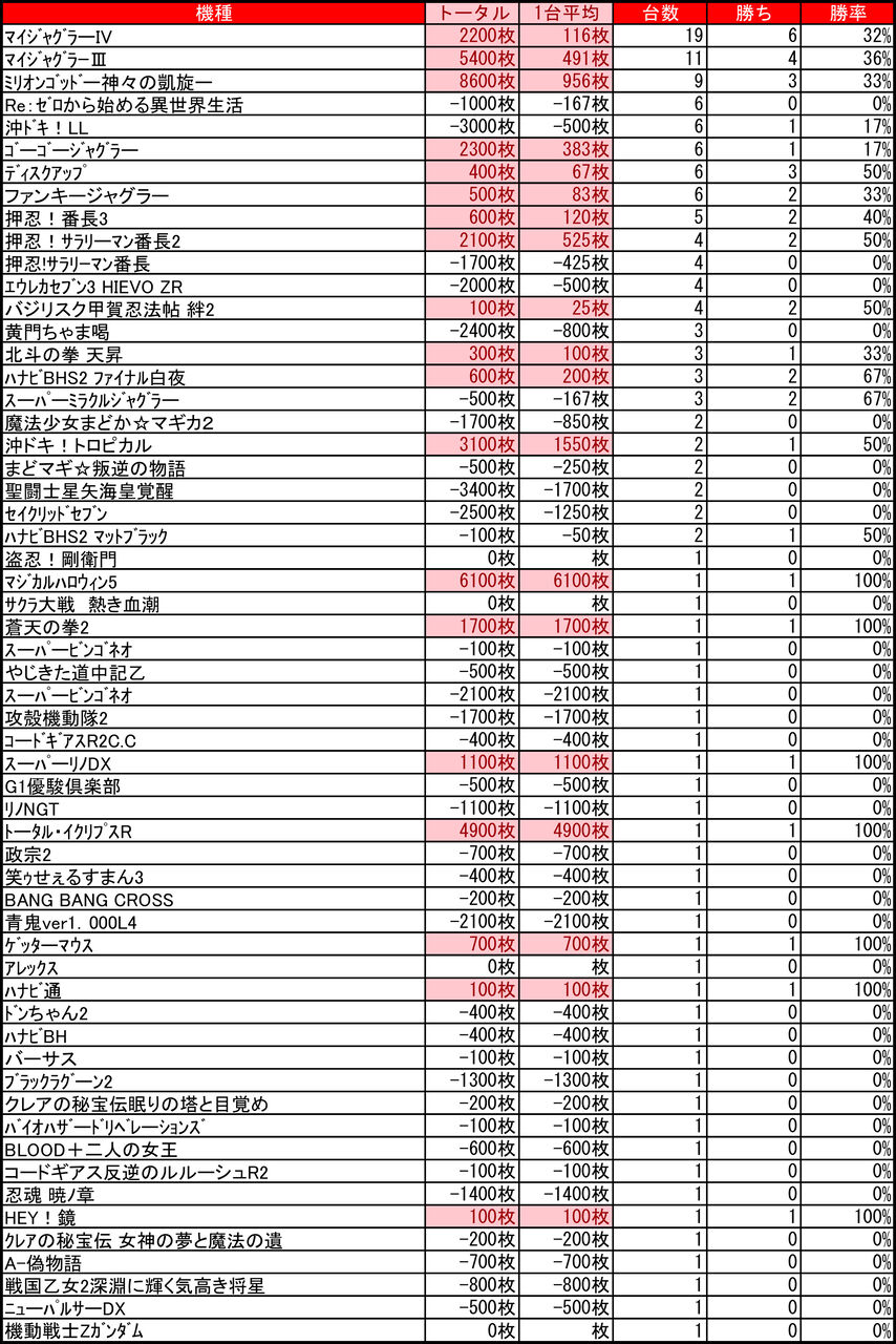 2020年06月12日 【6/11アーリーバード藻岩店】1の付く日→集計結果 1の付く日はアーリーバード藻岩店!ということで集計していきたいと思います。↓ちなみに前回↓【5/31アーリーバード藻岩店】1の付く日→集計結果では、早速。集計結果全体差枚:+5500枚1台平均:+36枚(20スロ:149台)全台勝率→40/149で27パーでした。 「特日」カテゴリの最新記事