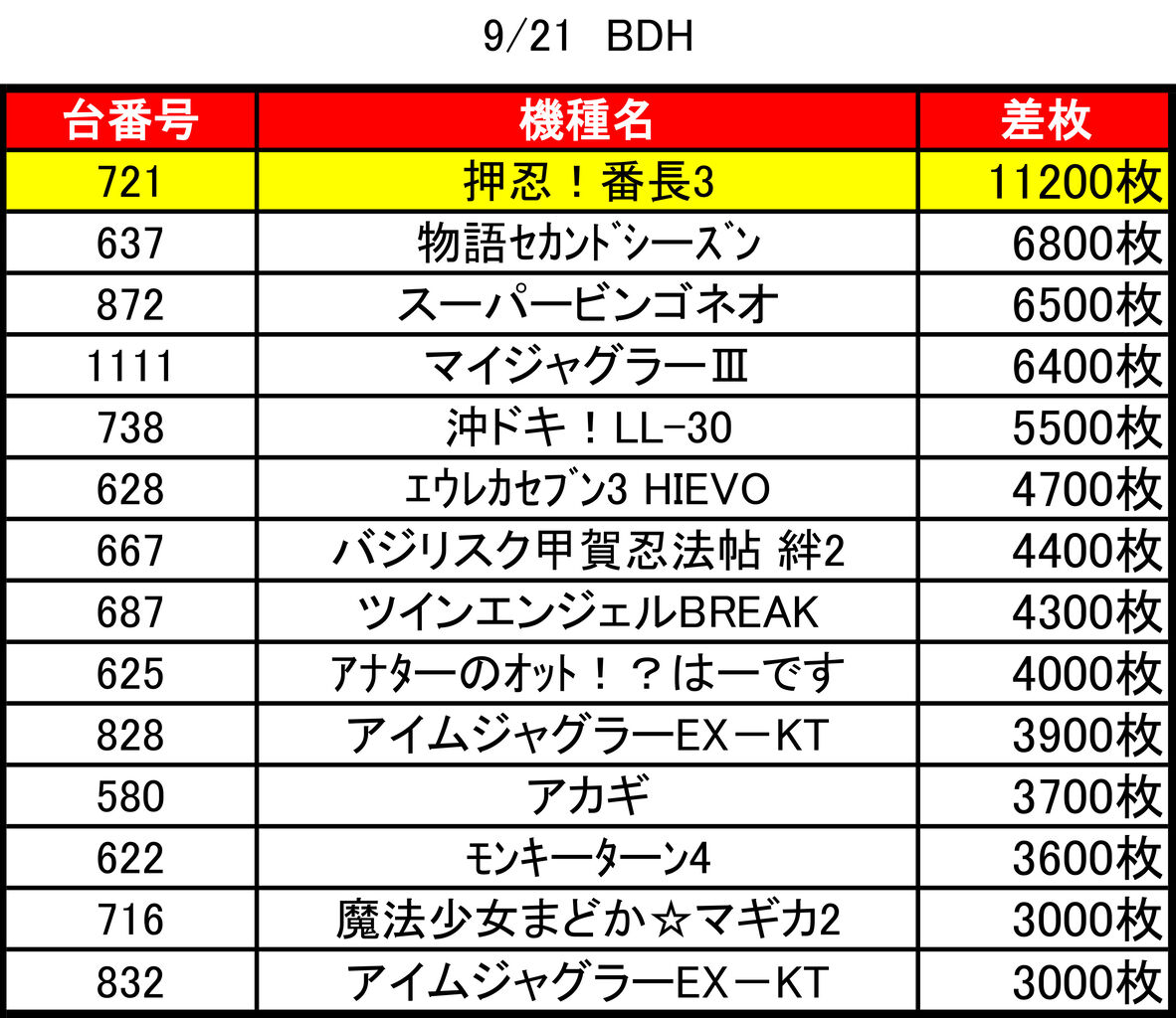 【9/11ビッグ大王東店】1の付く日&時差10:00オープン→集計結果