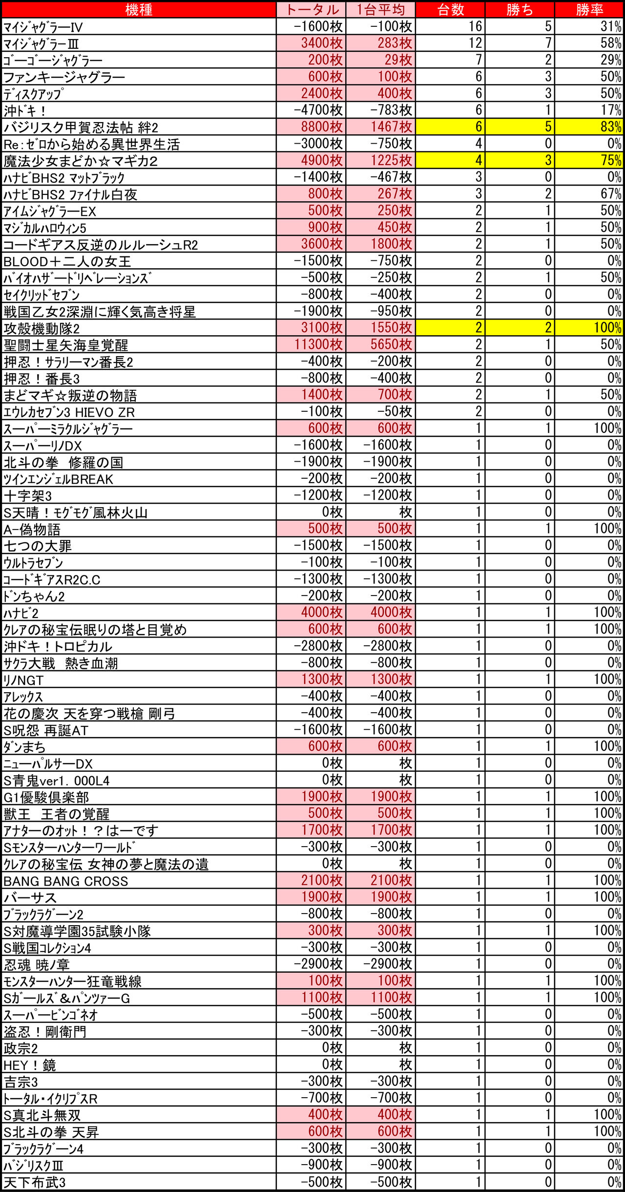 2020年12月22日 【12/21アーリーバード藻岩店】1の付く日→集計結果 1の付く日はアーリーバード藻岩店!ということで集計していきたいと思います。↓ちなみに前回↓【12/11アーリーバード藻岩店】1の付く日→集計結果では、早速。集計結果全体差枚:+21600枚1台平均:+148枚(20スロ:145台)全台勝率→55/145で38パーでした。 「特日」カテゴリの最新記事