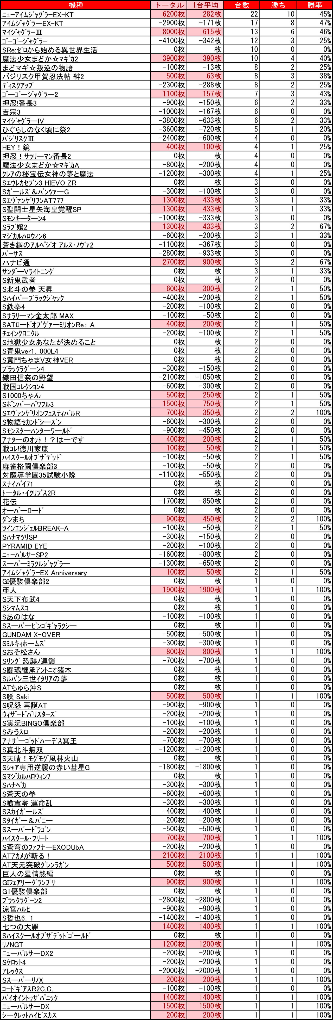 5の付く日!ということで「ベガスベガス狸小路2丁目店」の集計を致します。