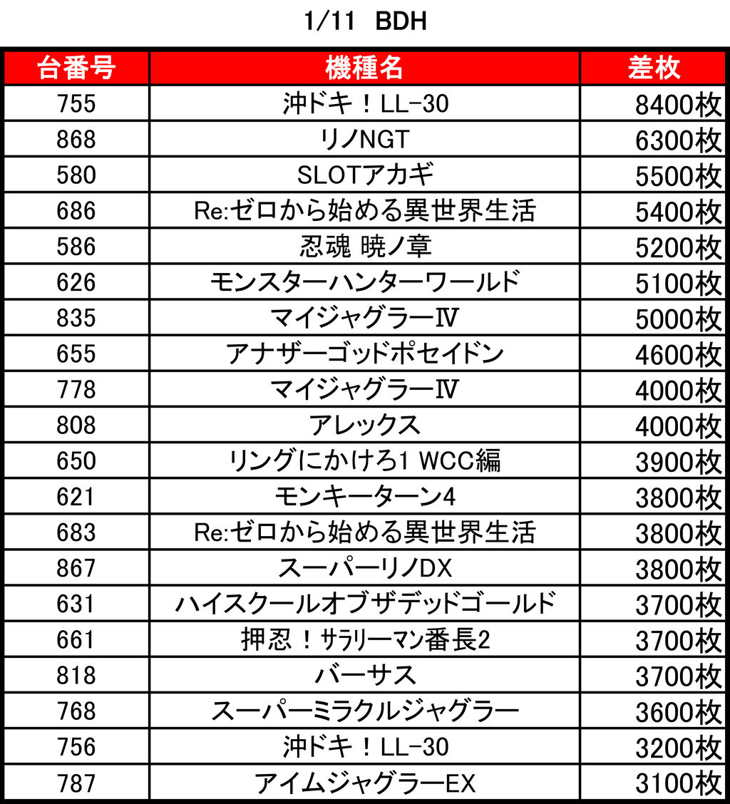 【1/1ビッグ大王東店】1の付く日&時差10:00オープン→集計結果