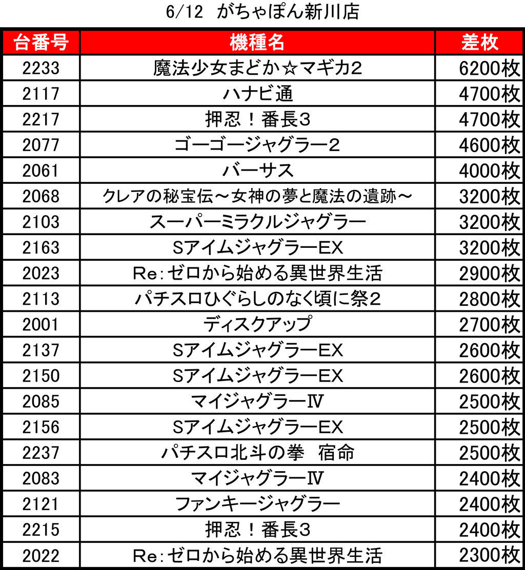 【5/2がちゃぽん新川店】2の付く日→集計結果