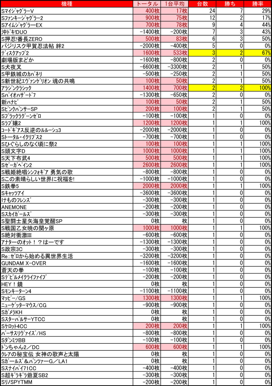 全体差枚:-17100枚