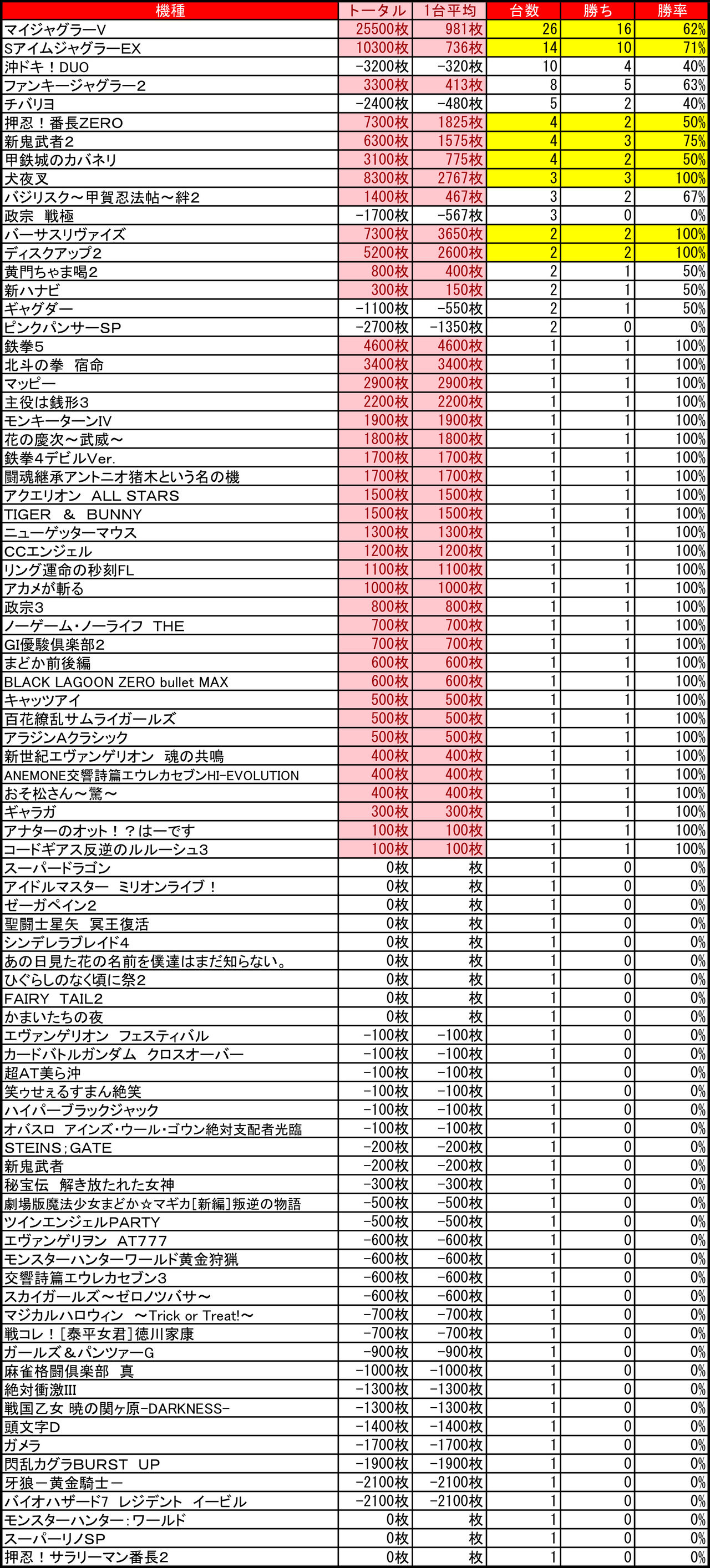 1台平均:+510枚(20スロ:162台)