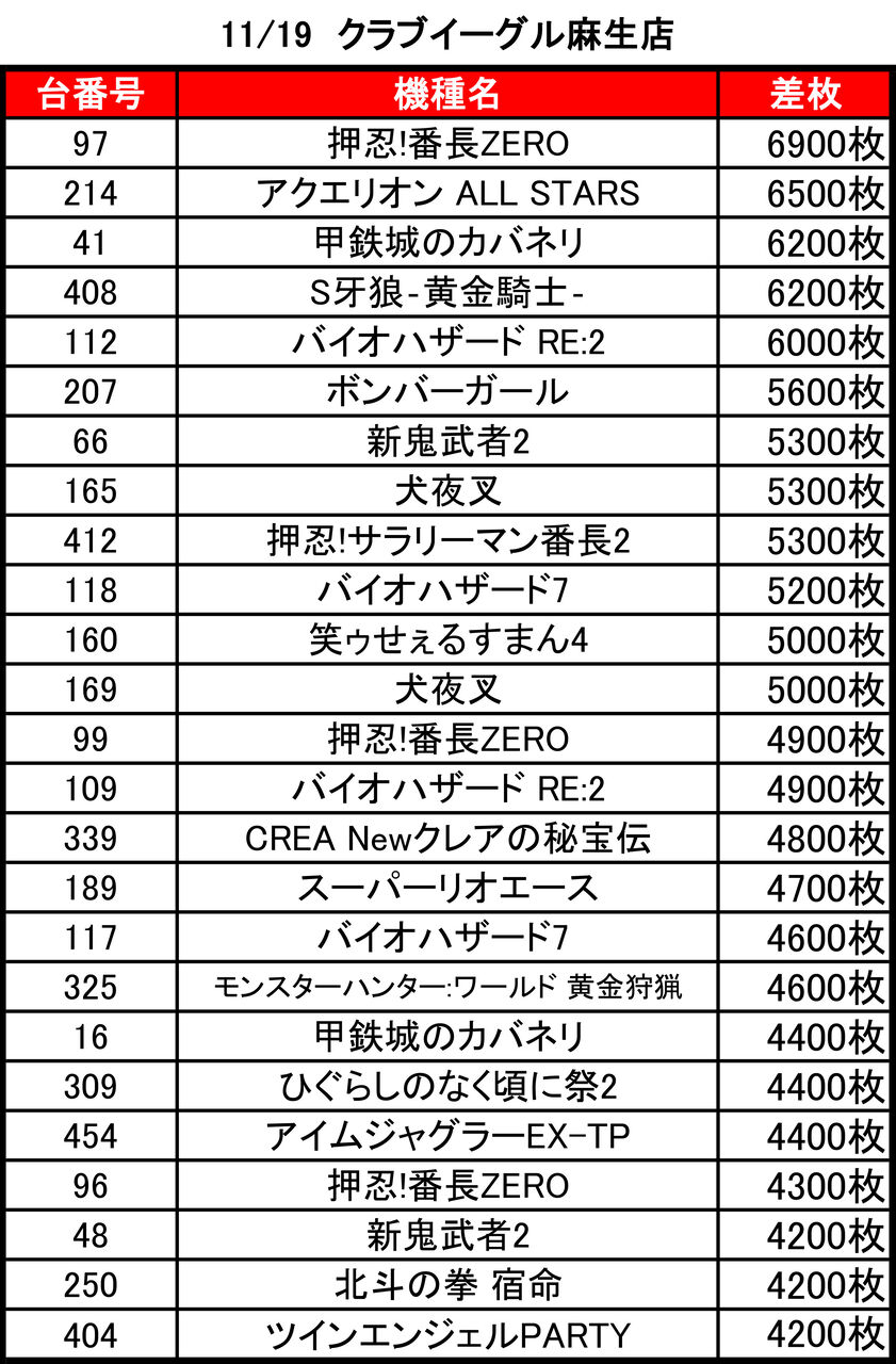 2022年11月20日 【11/19 クラブイーグル千歳店】9のつく日→集計結果 ↓前回↓【11/9 クラブイーグル千歳店】9のつく日→集計結果集計結果全体差枚:+3600枚1台平均:+11枚(20スロ:317台)20スロ全体勝率→128/317で40パーでした。-スポンサーサイト- 「特日」カテゴリの最新記事 タグ :#スロット専門店#千歳#パチスロ#特定日