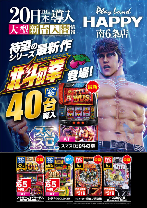 2023年04月21日 スマスロ北斗の拳って実際どうなの?? メーカーのキラーコンテンツ、「北斗の拳」北海道導入は全国に比べかなり遅れましたが、やっと導入始まりましたね!王手グループの旗艦店などはかなりの台数をいれていました。さて導入初日、どういう結果になったんでしょうか??見て行きましょう!! 強いお店、弱いお店、色々とありましたねww今後の新台入替の参考になりましたら・・・ww 「新台入替」カテゴリの最新記事 タグ :#北斗の拳#札幌#パチスロ#パチンコ#スロット#スマスロ