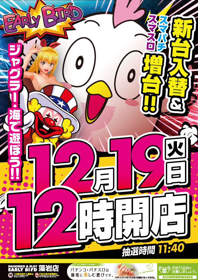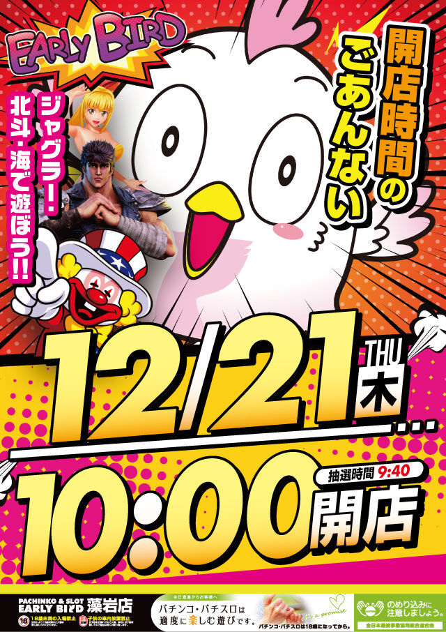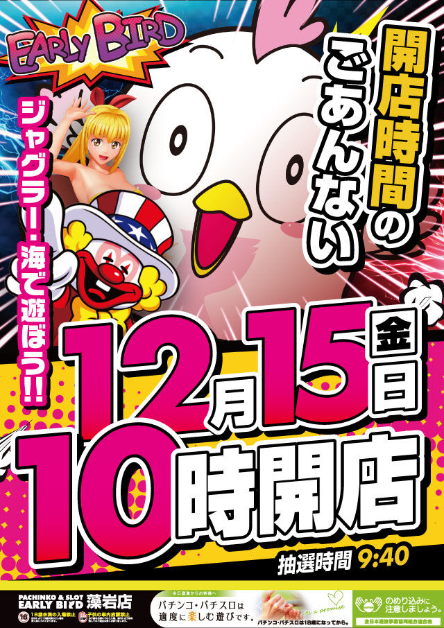 2023年12月18日 【12/15 アーリーバード藻岩店】時差10:00オープン→集計結果 -スポンサーサイト-集計結果全体差枚:-28800枚1台平均:-210枚(20スロ:137台)全台勝率→43/137で31パーでした。-スポンサーサイト- 「時差開店」カテゴリの最新記事