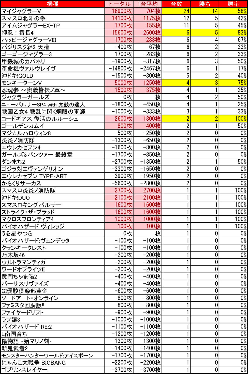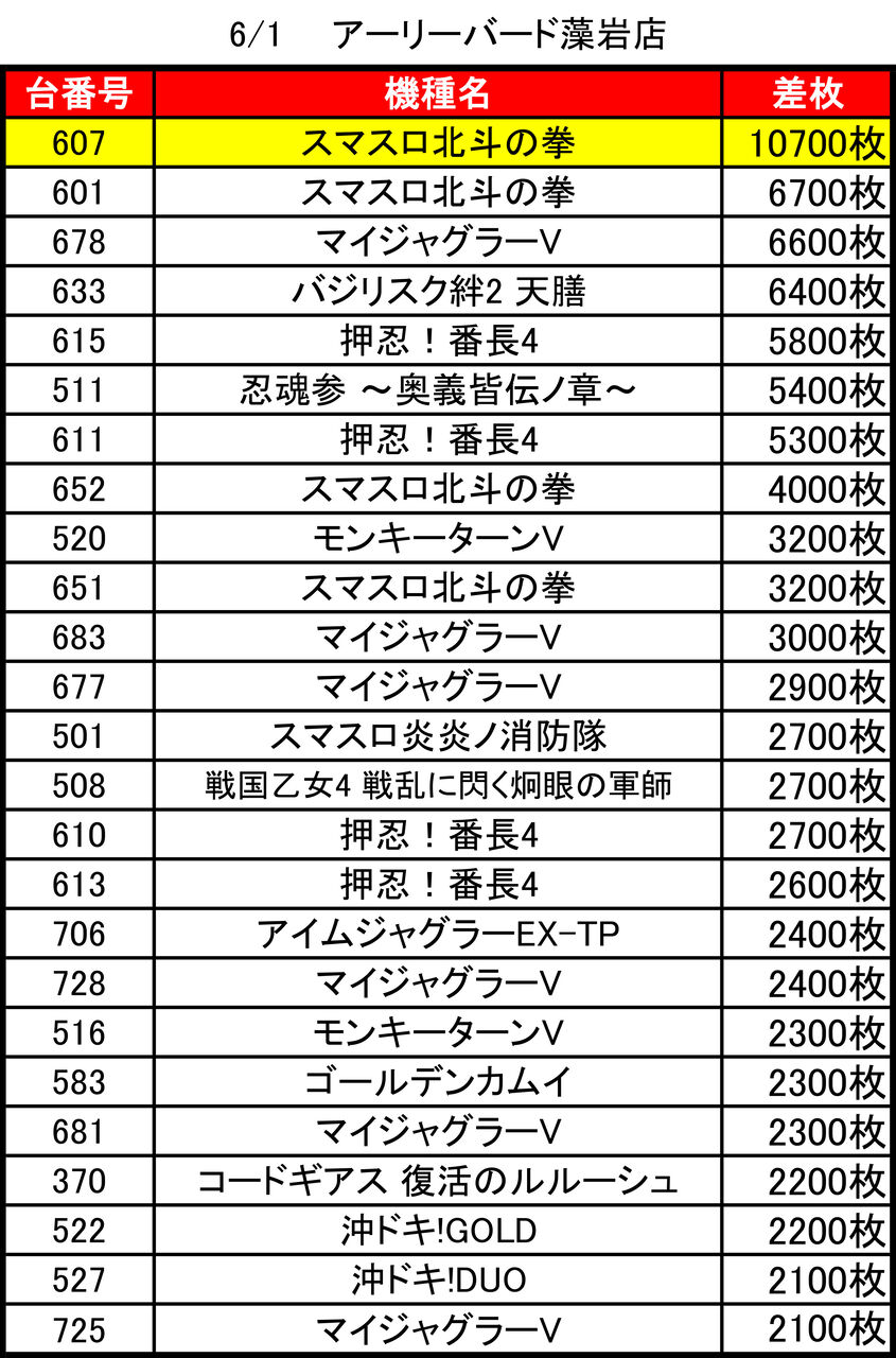 2024年06月02日 【6/1アーリーバード藻岩店】1の付く日→集計結果 -スポンサーサイト-1の付く日はアーリーバード藻岩店!ということで集計していきたいと思います。集計結果全体差枚:+7000枚1台平均:+46枚(20スロ:153台)全台勝率→61/153で40パーでした。-スポンサーサイト- 「特日」カテゴリの最新記事