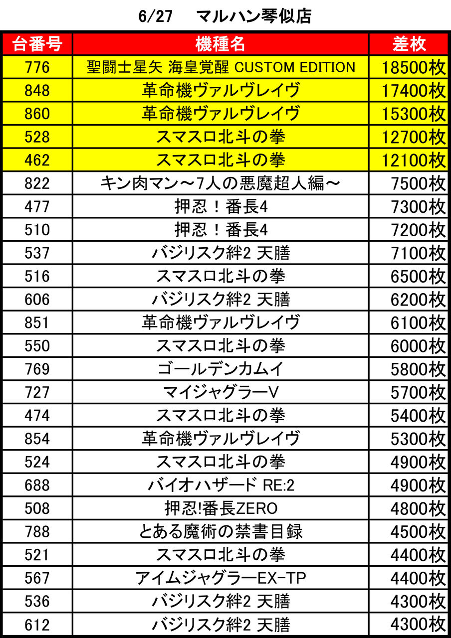 2024年06月28日 【6/27 マルハン琴似店】7の付く日→集計結果 -スポンサーサイト-集計結果全体差枚:+145200枚1台平均:+356枚(20スロ:408台) 全台勝率→182/408で45パーでした!-スポンサーサイト--スポンサーサイト- 「特日」カテゴリの最新記事 タグ :#札幌#パチンコ#パチスロ#スロット#北海道