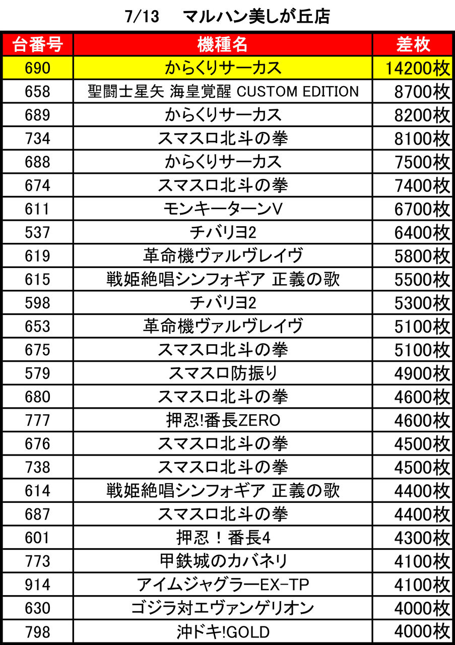 2024年07月14日 【7/13 マルハン美しが丘店】なまら(?)でっかいシュー→集計結果 -スポンサーサイト-集計結果全体差枚:+46600枚1台平均:+109枚(20スロ:428台)全台勝率→187/428で44パーでしたっ。-スポンサーサイト--スポンサーサイト- 「なまらいぶ」カテゴリの最新記事 タグ :#札幌#パチンコ#パチスロ#スロット#ポスター示唆#なまらいぶ
