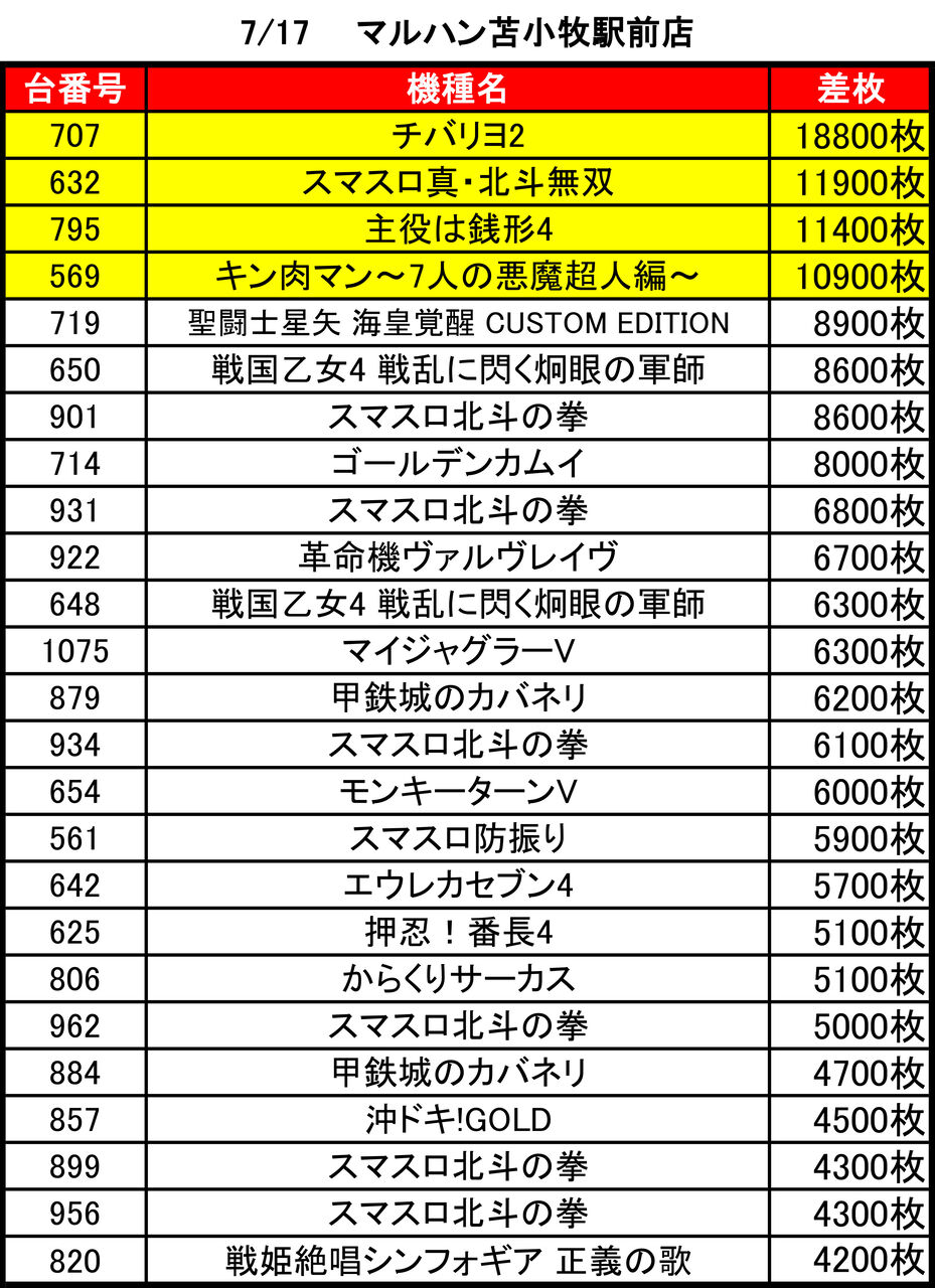 2024年07月18日 【7/17 マルハン苫小牧駅前店】7の付く日→集計結果 -スポンサーサイト-↓前回↓【7/7 マルハン苫小牧駅前店】7の付く日→集計結果集計結果全体差枚:+103000枚1台平均:+224枚(20スロ:460台) 全台勝率→190/460で41パーでした! -スポンサーサイト--スポンサーサイト- 「マルハン苫小牧駅前店」カテゴリの最新記事 タグ :#苫小牧#パチンコ#パチスロ#スロット#特定日