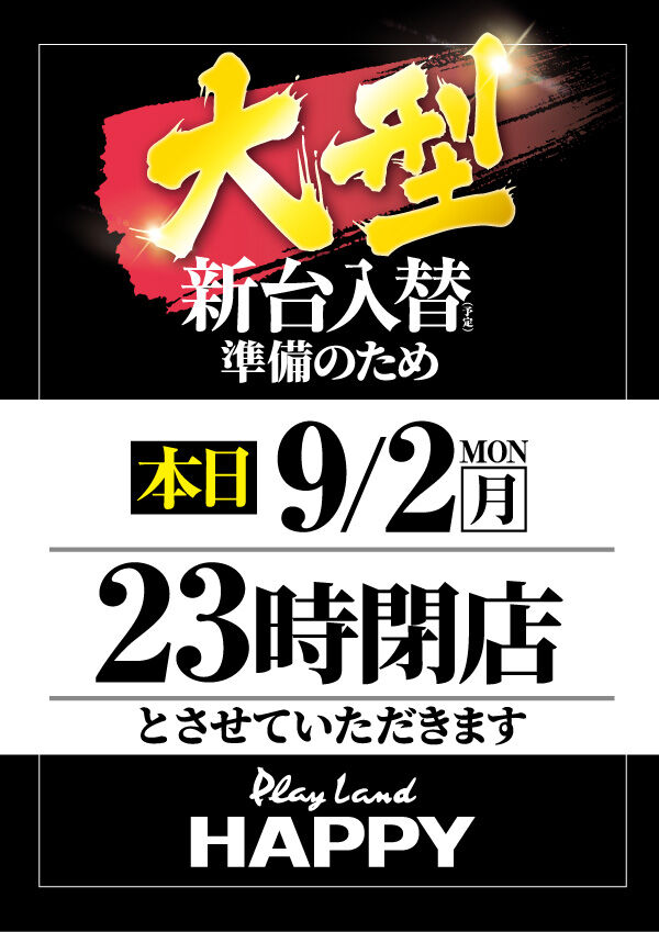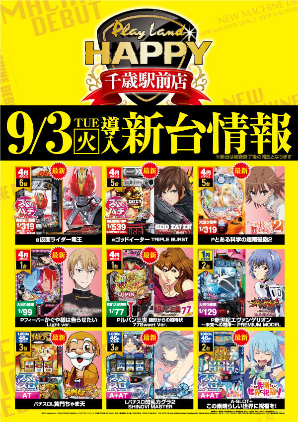 2024年09月03日 【9/1 プレイランドハッピー千歳駅前店】金ポスター→集計結果 -スポンサーサイト-集計結果全体差枚:+7500枚1台平均:+23枚(20スロ:328台) 全体勝率→133/328で41パーでした!-スポンサーサイト- 「時差開店」カテゴリの最新記事 タグ :#千歳#パチンコ#スロット#時差オープン#パチスロ#北海層