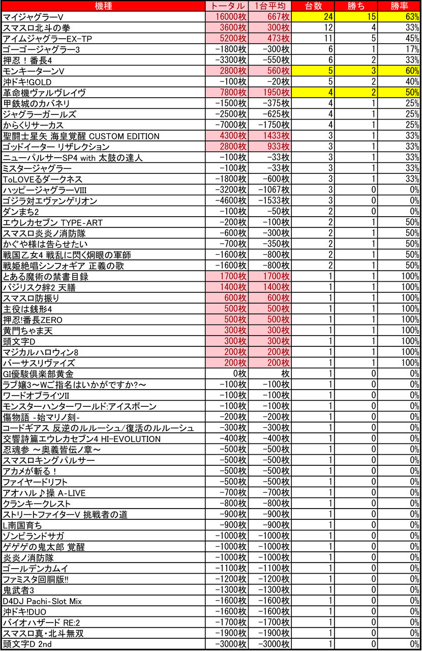 2024年10月20日 備忘録【10/11 アーリーバード藻岩店】1の付く日→集計結果 -スポンサーサイト-1の付く日はアーリーバード藻岩店!ということで集計していきたいと思います。集計結果全体差枚:-5500枚1台平均:-36枚(20スロ:153台)全台勝率→56/153で37パーでした。-スポンサーサイト- 「特日」カテゴリの最新記事 タグ :#特定日#特日#札幌#北海道#パチンコ#パチスロ#スロット