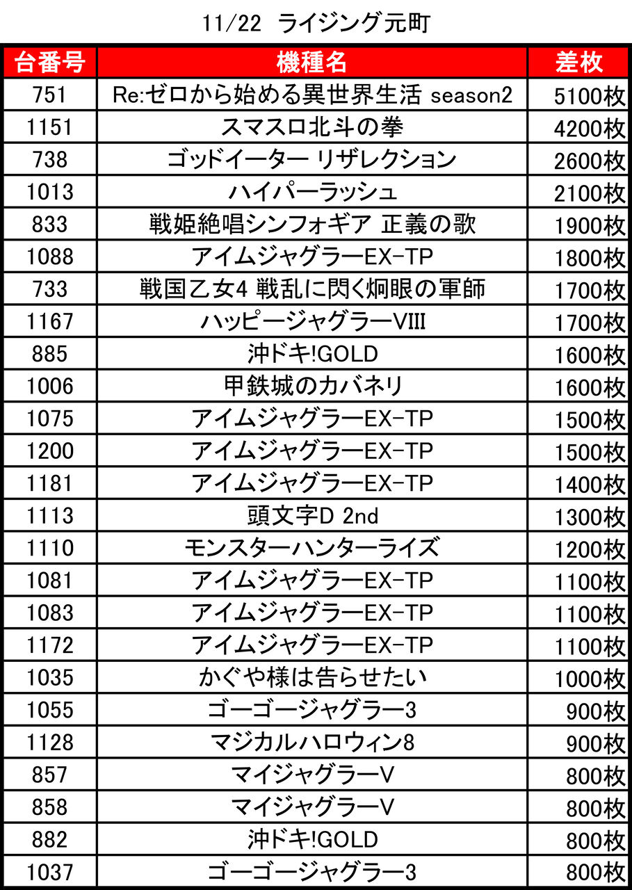 2024年11月24日 【11/22 ライジング元町店】ゾロ目の日→集計結果 -スポンサーサイト-集計結果全体差枚:-16100枚1台平均:-80枚(20スロ200台)全体勝率→65/200で33パーでした。-スポンサーサイト- 「ゾロ目」カテゴリの最新記事 タグ :#パチスロ#パチンコ#スロット#札幌#北海道#ゾロ目の日