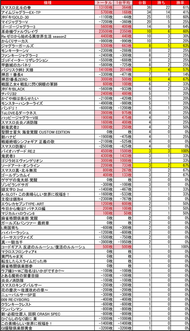 2024年11月28日 【11/27 プレイランドハッピー白石店】時差12:00オープン→集計結果 -スポンサーサイト-集計結果全体差枚:+18700枚1台平均:+53枚(20スロ:352台)全体勝率→134/352で38パーですっ。-スポンサーサイト- 「時差開店」カテゴリの最新記事 タグ :#札幌#北海道#パチンコ#パチスロ#スロット