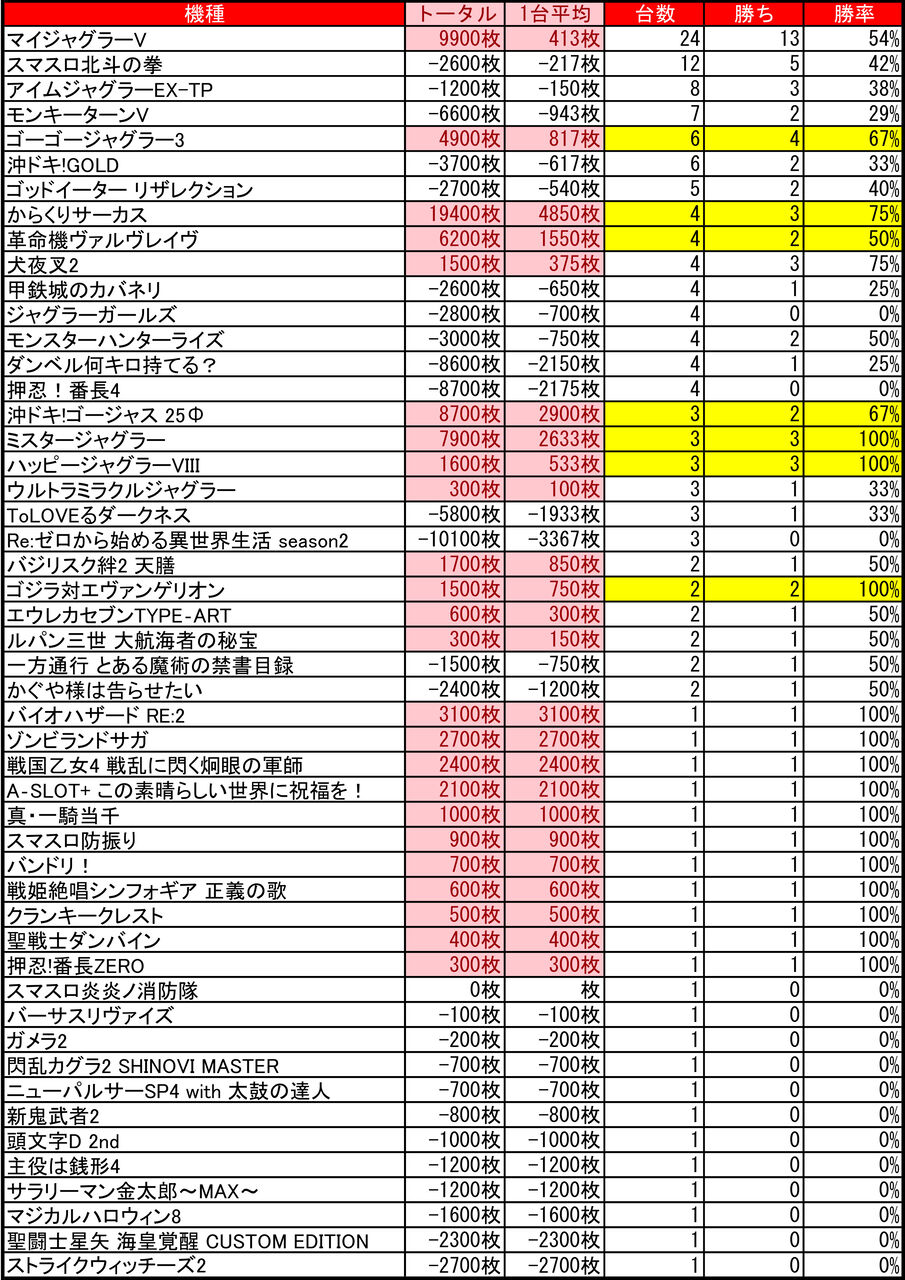 2025年01月13日 【1/11 アーリーバード藻岩店】1の付く日→集計結果 -スポンサーサイト-1の付く日はアーリーバード藻岩店!ということで集計していきたいと思います。集計結果全体差枚:+4400枚1台平均:+29枚(20スロ:153台)全台勝率→73/153で48パーでした。-スポンサーサイト- 「特日」カテゴリの最新記事 タグ :#特定日#特日#札幌#北海道#パチンコ#パチスロ#スロット