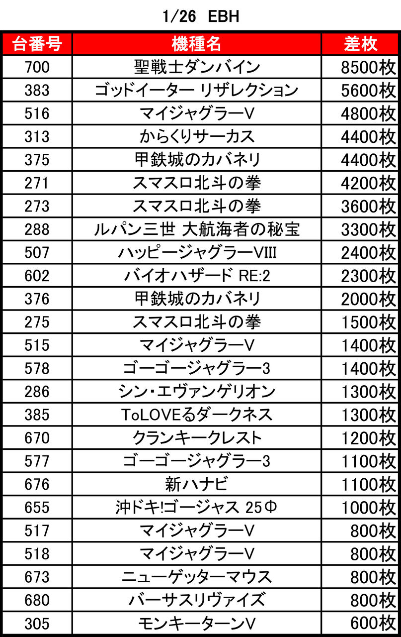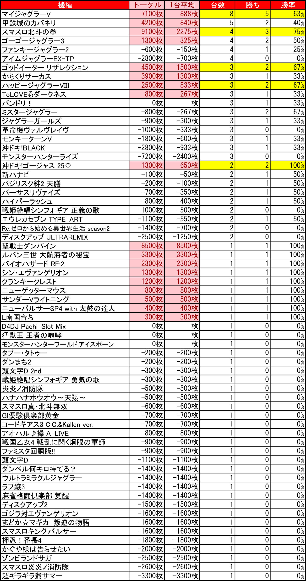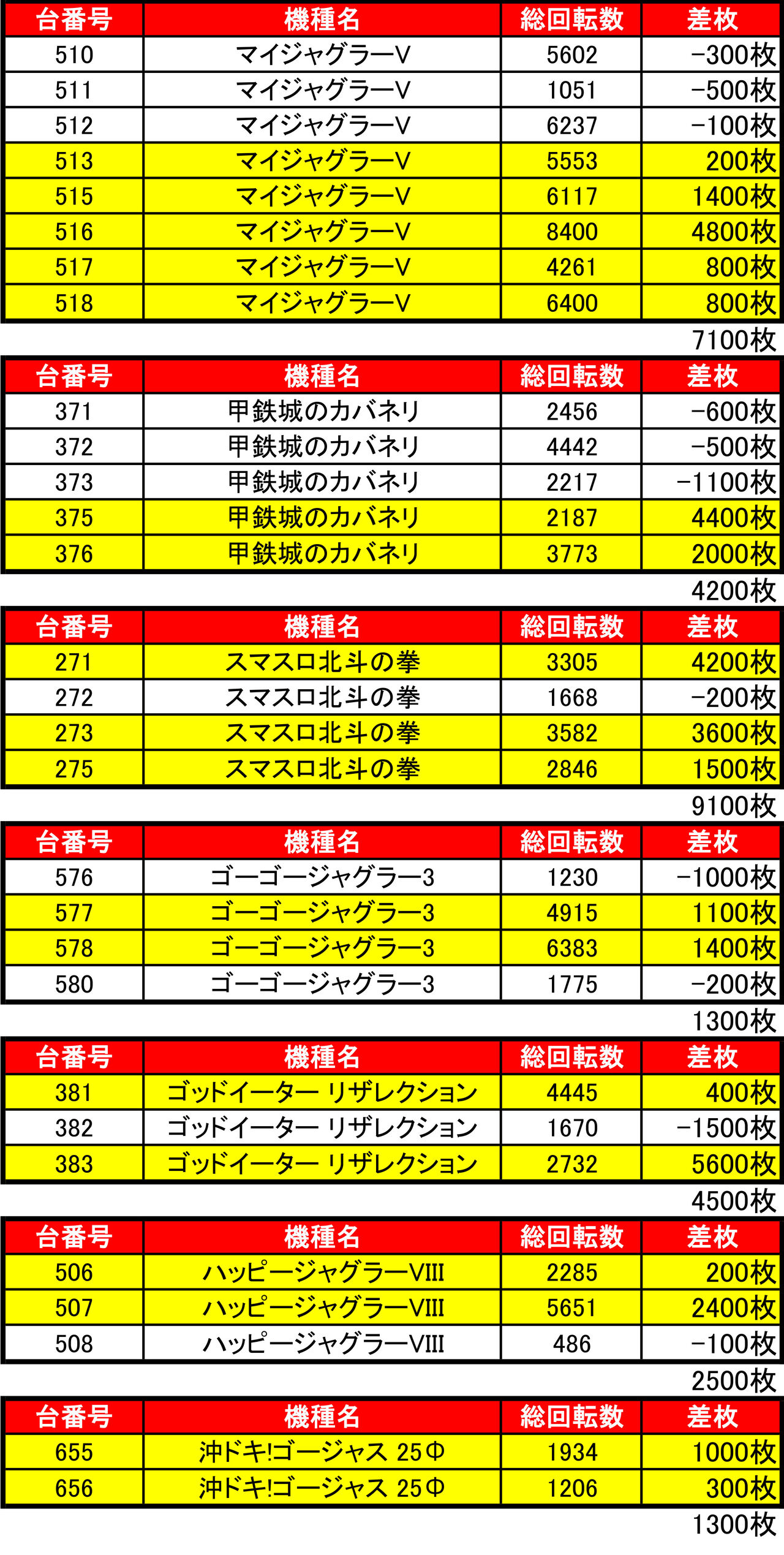 全体差枚:-4200枚