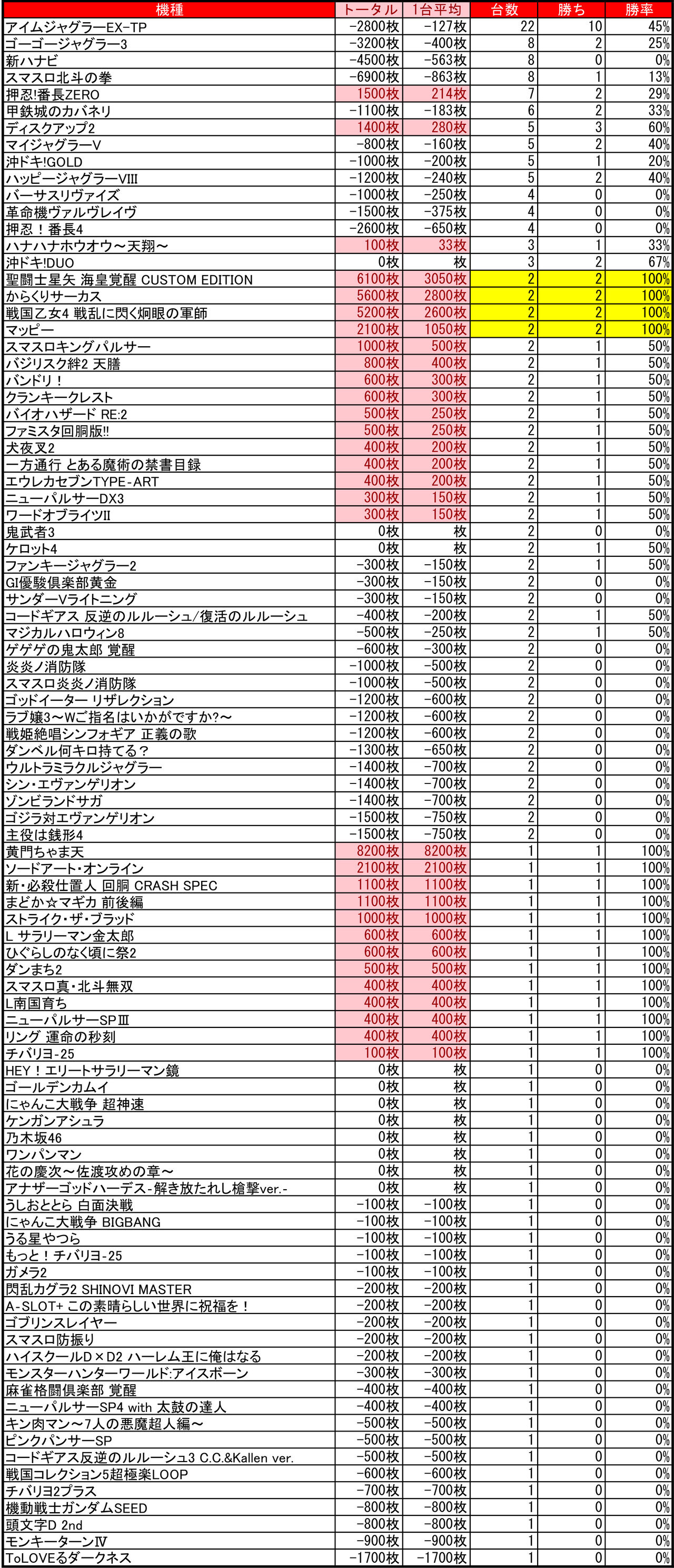 2025年06月28日 【6/25 ベガスベガス美しが丘】5の付く日→集計結果 -スポンサーサイト-5の付く日はベガスベガス!ということで、ベガスベガス美しが丘店の集計をしていきます。では早速!集計結果全体差枚:-8000枚1台平均:-38枚(20スロ208台)-スポンサーサイト-全体勝率→65/208で31パーでした!-スポンサーサイト- 「特日」カテゴリの最新記事 タグ :#パチスロ#パチンコ#札幌#特定日#特日#北海道#スロット