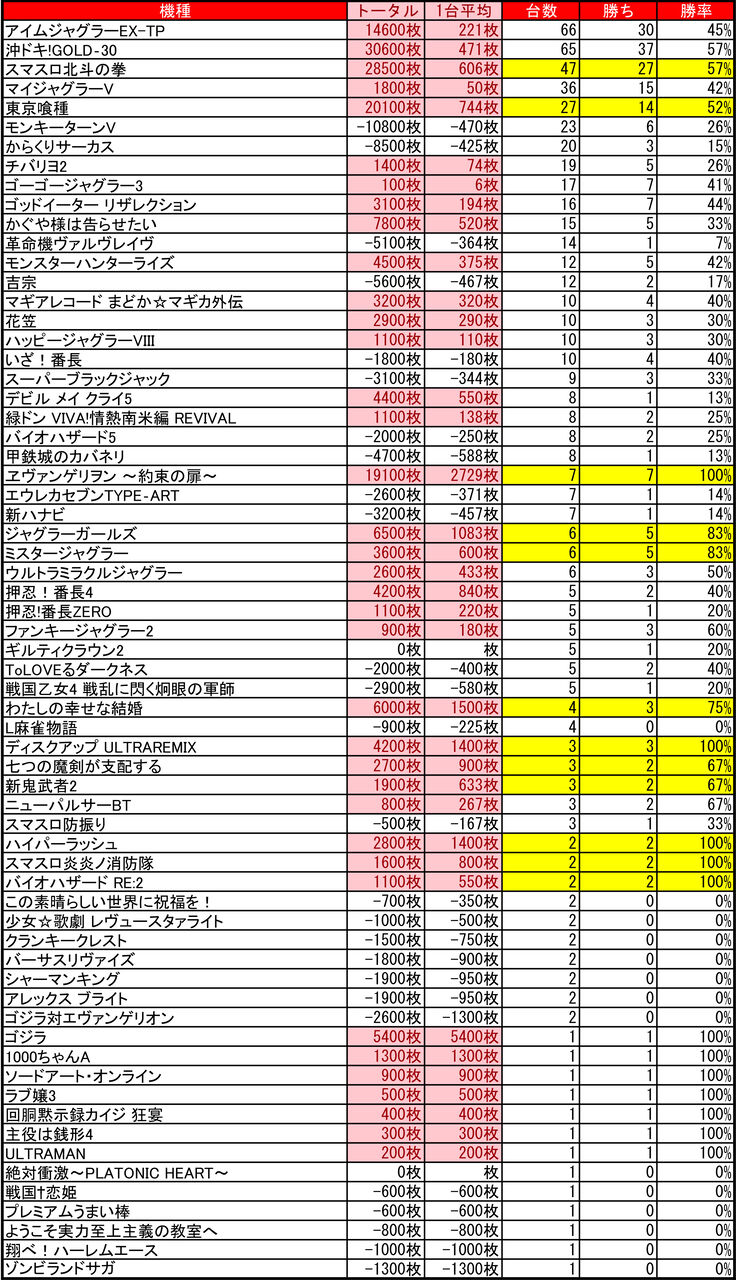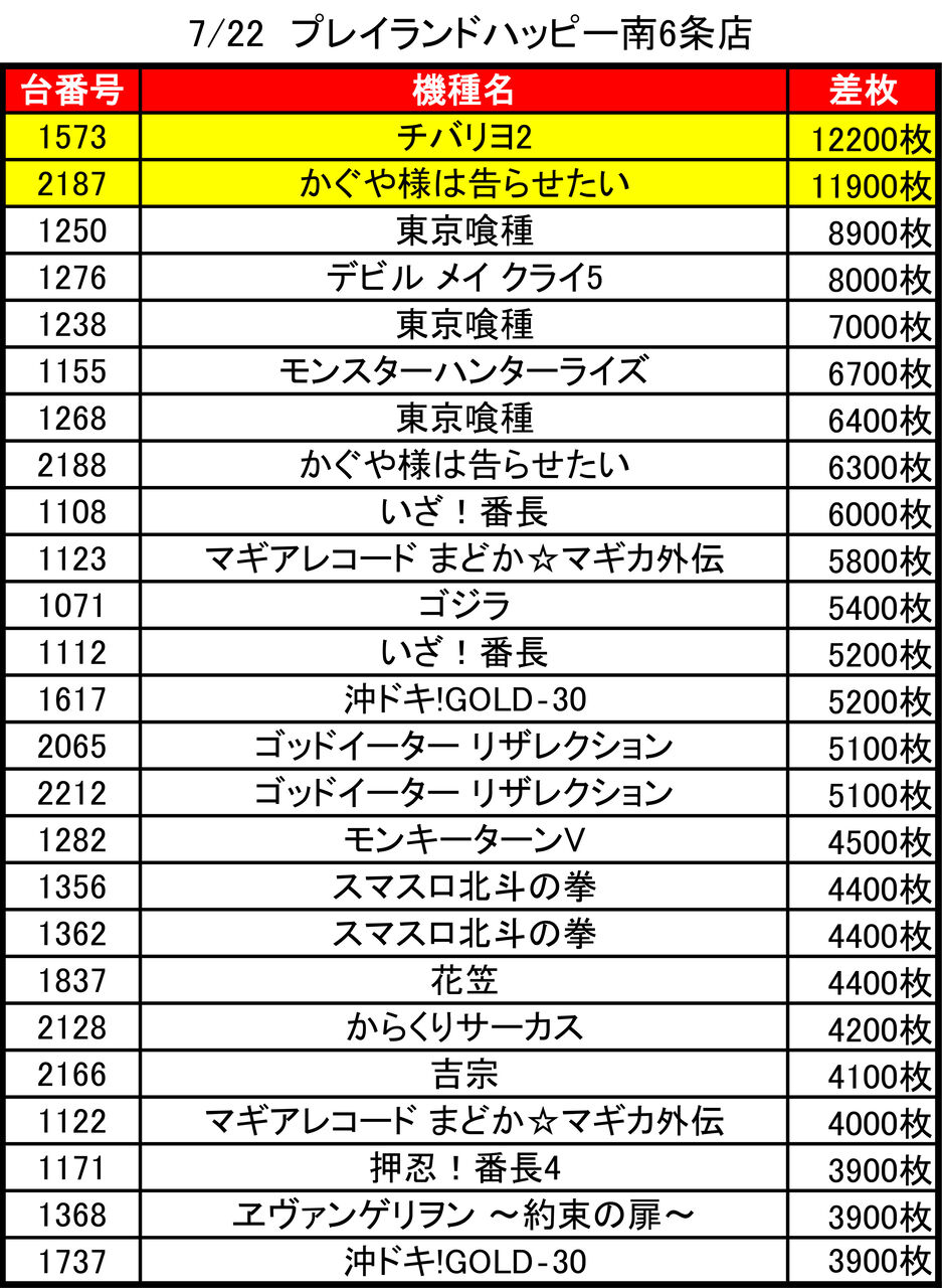 2025年07月24日 【7/22 プレイランドハッピー南6条店】ゾロ目の日→集計結果 -スポンサーサイト-集計結果全体差枚:+123900枚1台平均:+208枚(20スロ:595台)-スポンサーサイト-全体勝率→252/595で42パーでした。-スポンサーサイト- 「ゾロ目」カテゴリの最新記事