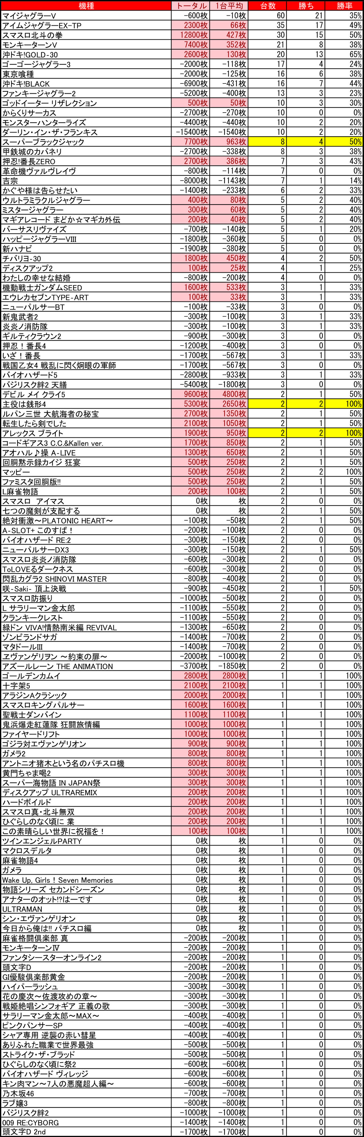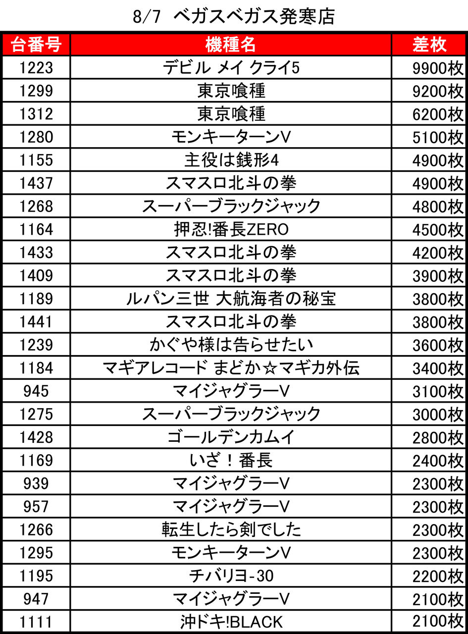 2025年08月09日 【8/7 ベガスベガス発寒店】夢双れいちゅ→集計結果 -スポンサーサイト-集計結果全体差枚:-17600枚1台平均:-36枚(20スロ492台)-スポンサーサイト-全台勝率→169/492で34パーでした。-スポンサーサイト--スポンサーサイト- 「ライター来店」カテゴリの最新記事 タグ :#特定日#特日#北海道#札幌#パチンコ#パチスロ#スロット