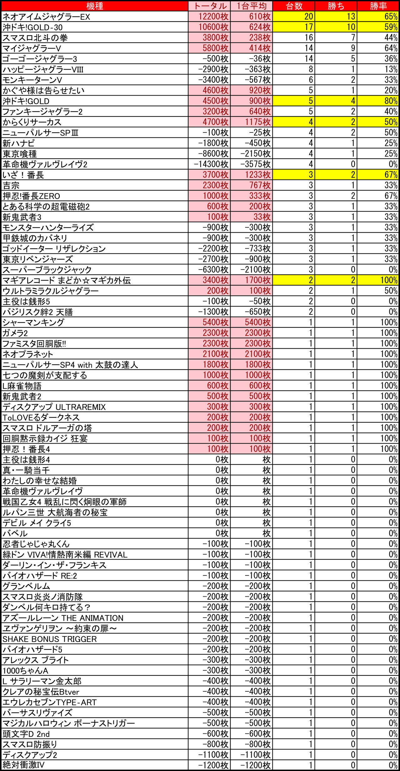 2025年11月29日 【11/28 プレイランドハッピー厚別通店】8のつく日→集計結果 -スポンサーサイト-集計結果全体差枚:+23300枚1台平均:+110枚(20スロ:211台) 全台勝率→88/211で42パーでした。-スポンサーサイト- 「特日」カテゴリの最新記事 タグ :#札幌#北海道#パチスロ#パチンコ#スロット#特定日#特日