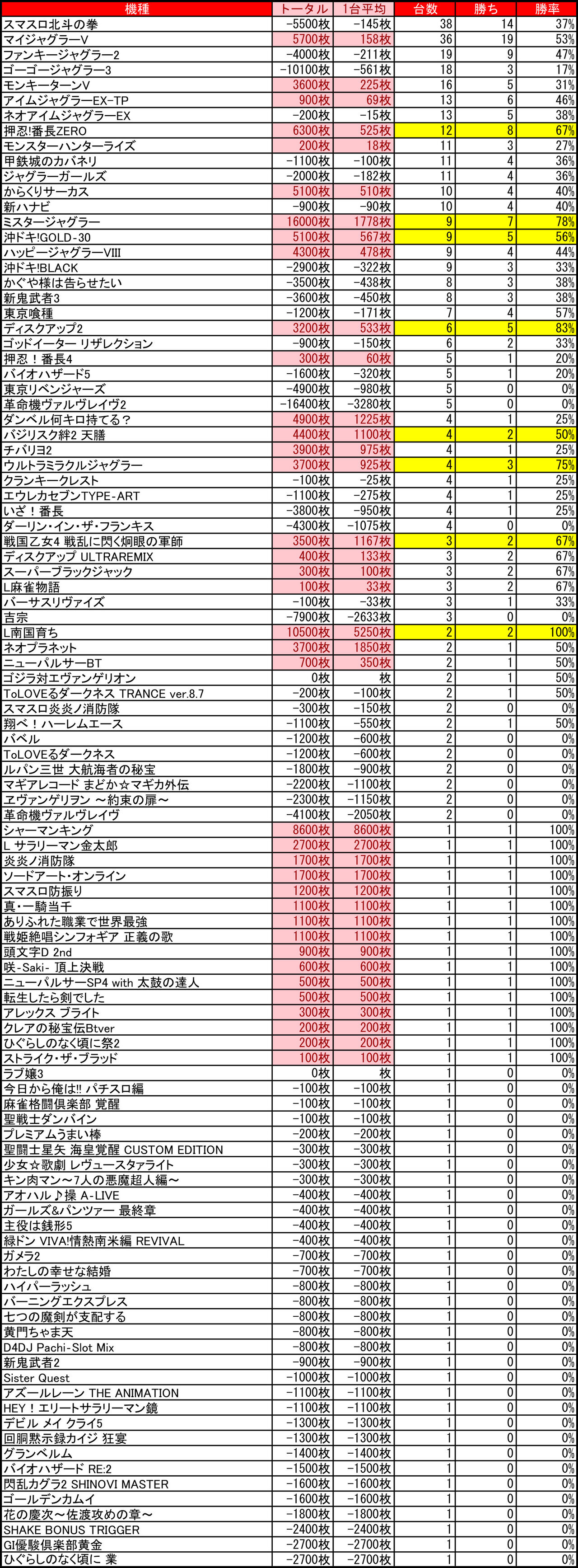 2025年12月06日 【12/5 ベガスベガス大谷地店】5の付く日→集計結果 -スポンサーサイト-集計結果全体差枚:-12000枚1台平均:-27枚(20スロ:482台) 全体勝率→169/482で39パーでした。-スポンサーサイト- 「特日」カテゴリの最新記事